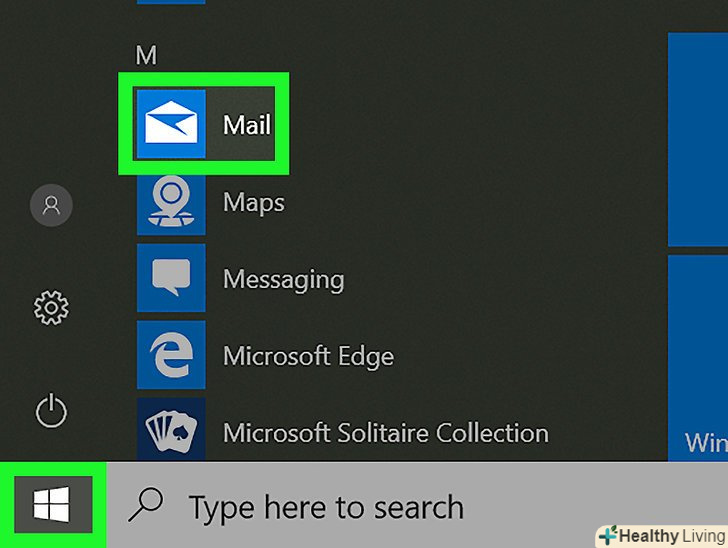 Запустіть програму "пошта". воно відзначено значком у вигляді конверта, який знаходиться праворуч на панелі завдань.