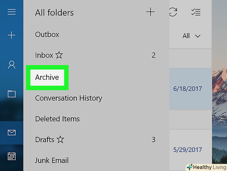 НатиснітьАрхів.ви знайдете цю папку на лівій панелі поштової скриньки.- Щоб заархівувати листи, які зберігаються в папці "Вхідні«, клацніть по листу правою кнопкою миші і в меню виберіть»архівувати".