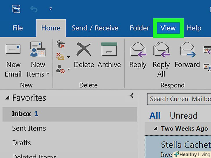 Запустіть програму Outlook. натисніть на значок у вигляді конверта і білої літери " O " на синьому тлі.- Якщо на робочому столі такого значка немає, відкрийте меню «Пуск» (в Windows) і введітьOutlook. У цьому меню відобразиться значок програми Outlook.