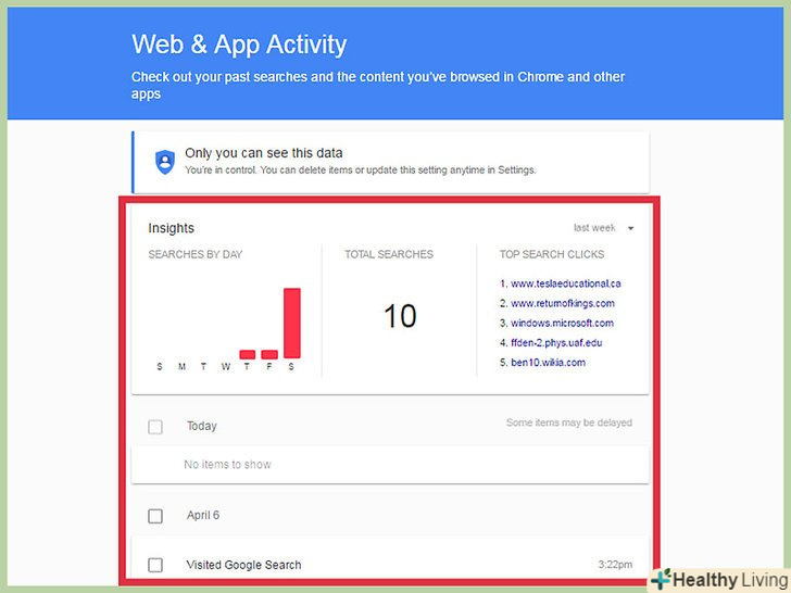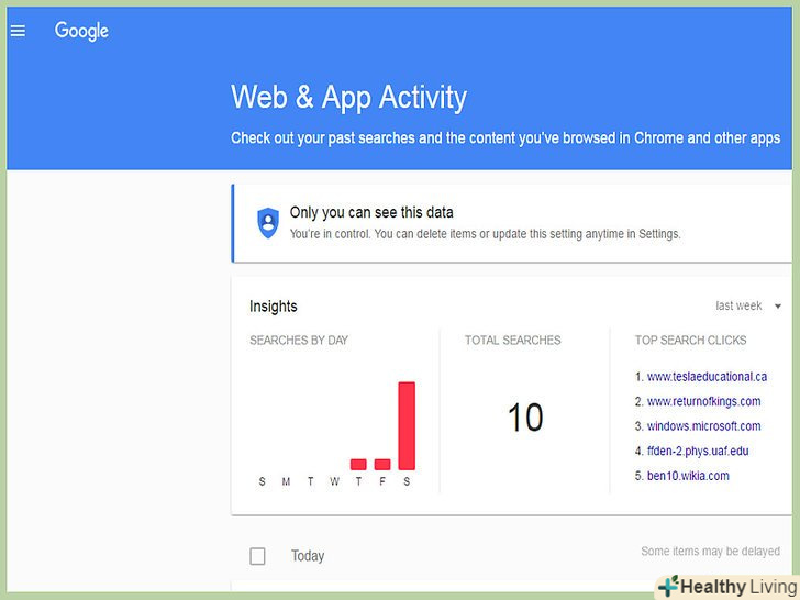 Перегляньте історію користування Інтернетом.на зазначеній сторінці відобразиться історія переглядів, упорядкована за часом і датою. Щоб видалити історію, клацніть по значку у вигляді шестерінки (в правому верхньому куті екрану) і в меню виберіть «Видалити елементи».[4]