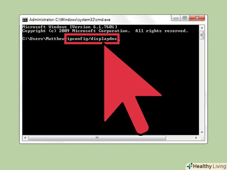 Дочекайтеся, коли відкриється командний рядок. це вікно з чорним фоном, в якому потрібно ввести командуipconfig/displaydns. Потім натисніть "Enter".