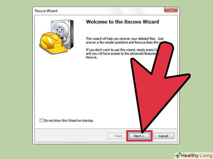 У вікні привітання програми натисніть «Далі», щоб відкрити вікно майстра Recuva.якщо при запуску програми це вікно не відкривається, натисніть «Налаштування» – «показати майстер при запуску».