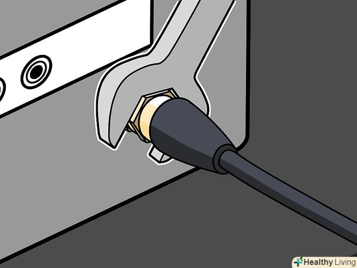 Якщо без інструментів не обійтися, то знайдіть ключ для коаксіального кабелю.такий ключ буде схожий на восьмигранну трубку без одного боку розміром від 7,5 до 10 сантиметрів. Цей зазор дозволяє повністю охопити кабель і роз'єм, щоб викрутити кабель з незначним механічним зусиллям (чим менше прикладене зусилля, тим нижча ймовірність пошкодити обладнання).