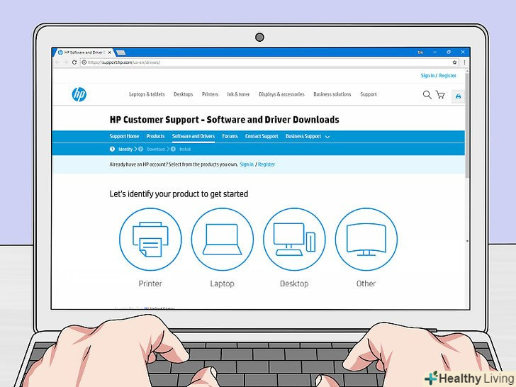Знайдіть програмне забезпечення принтера. перейдіть на сторінку https://support.hp.com/ru-ru/drivers/, введіть номер моделі принтера, натисніть "Додати«, а потім клацніть по» завантажити" у програмного забезпечення.