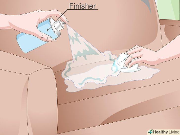Нанесіть фінішне покриття на поверхню шкіряного дивана, як тільки висохне останній шар барвника. його можна купити в тому ж місці, де ви купували барвник для шкіри. Його можна назвати як фінішне покриття або верхній шар для шкіряних виробів. Ви можете вибрати глянсове або матове покриття.- Розпиліть фінішне покриття на поверхню шкіряного дивана і втирайте його вологою, чистою ганчіркою.