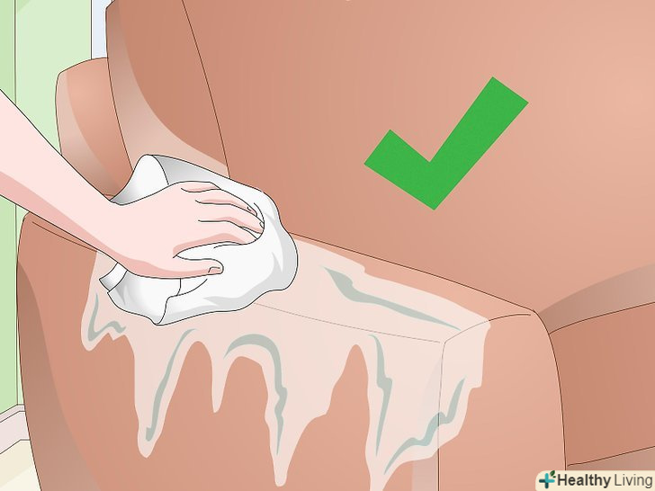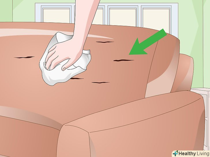 Витріть пил і бруд на шкірі, очищаючи всю поверхню дивана милом і водою. не вимочуйте диван повністю у воді. Замість цього, злегка протріть тканиною, яку Ви намочили мильною водою.