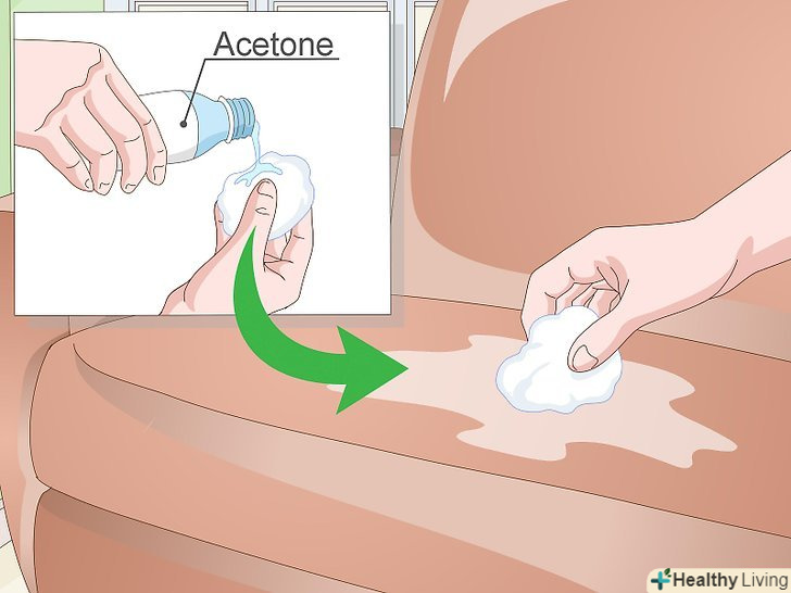 Застосуйте ацетон до шкіри, щоб більш глибоко очистити і підготувати її для фарбування. змочіть чисту тканину або ганчірку в ацетоні і протріть всю поверхню дивана.