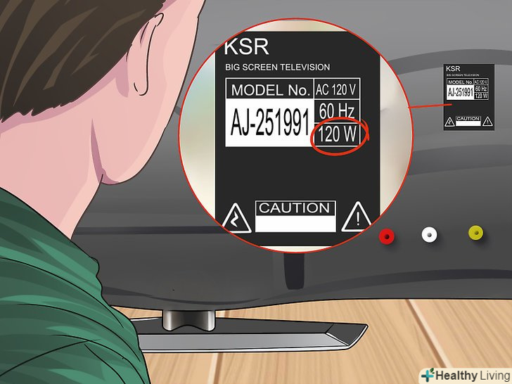 Огляньте ваш прилад. найчастіше потужність вказується на корпусі приладу, наприклад, на спеціальній наклейці.- Як правило, таку наклейку можна знайти на задній панелі приладу. У більшості випадків на наклейці вказується сила струму, напруга і потужність приладу. Або ж така інформація вказується на шильдику приладу. [10]