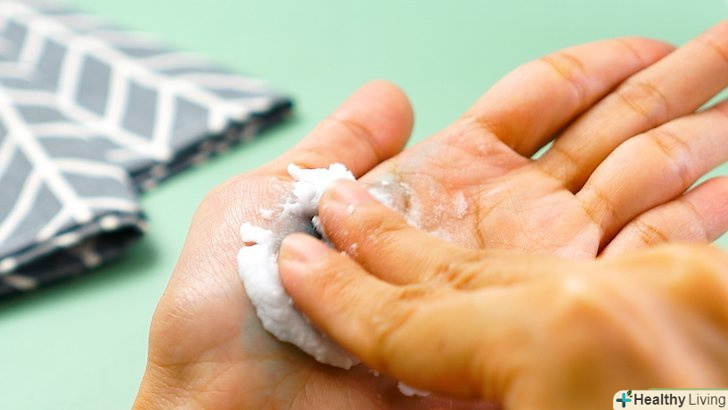 - Зробіть пасту з випічки соди та води, щоб видалити стійкі плями з шкіри. приготуйте пасту з двох частин соди і однієї частини води в невеликій мисці. Нанесіть пасту на пляму. Потріть шкіру пальцями круговими рухами. [4]