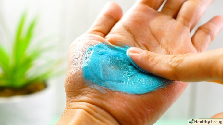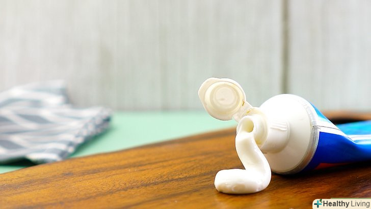 Використовуйте негелеву зубну пасту. якщо можливо, використовуйте зубну пасту, до складу якої входить харчова сода. Це підвищить ефективність даного методу. [2]- Потріть забруднену ділянку, використовуючи зубну пасту. нанесіть тонкий шар зубної пасти на пляму. Акуратно круговими рухами потріть пляму. Якщо харчовий барвник потрапив на шкіру рук, нанесіть зубну пасту на руки і потріть нею шкіру так, як ви зазвичай миєте руки за допомогою мила. Зубна паста видалить харчовий барвник з шкіри.