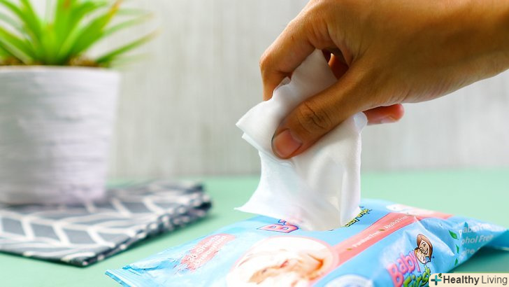 Спробуйте видалити харчовий барвник з обличчя, використовуючи дитячу вологу серветку. Масла розщеплюють харчові барвники. Завдяки цьому ви без зусиль зможете видалити пляму.