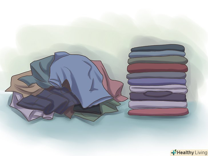 Звільніть місце для чистих речей. наведіть порядок в шафі і ящиках — складіть і акуратно розвісьте весь одяг. При акуратному і ефективному зберіганні у вас з'явиться більше місця для одягу та інших речей на зразок коробок, колекцій, ковдр та інших предметів, у яких поки немає місця.