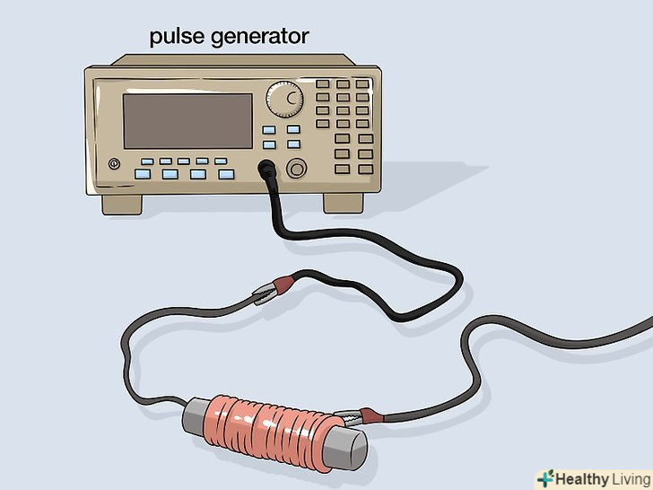 Підключіть котушку індуктивності до джерела імпульсної напруги. найбільш простий спосіб отримати імпульсний струм полягає в тому, щоб придбати імпульсний генератор. Він працює аналогічно звичайному функціональному генератору і таким же чином підключається до ланцюга. Підключіть вихідний провід генератора до червоного проводу живлення, який слід підключити до струмочутливого резистора. [12]- Імпульсна напруга можна також отримати самостійно . Воно може пошкодити знаходяться поблизу електронні пристрої, тому будьте обережні.