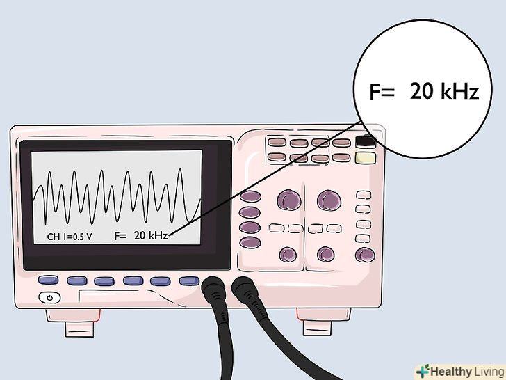 Знайдіть частоту струму функціонального генератора. ця частота відобразиться на осцилографі. Подивіться на число в нижній частині екрана, розмірність якого вказана в кілогерцах (кГц). Запишіть це число-воно вам знадобиться для обчислення індуктивності. [6]- Якщо потрібно перевести Герци (Гц) в кілогерци, пам'ятайте, що 1 кГц = 1000 Гц. Наприклад, 1 Гц = 0,001 кГц.