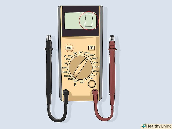 Увімкніть RLC-метр і дочекайтеся, поки він запуститься. стандартний RLC-метр, або вимірювач іммітансу, дуже схожий на звичайний мультиметр, яким вимірюють напругу і струм. Більшість вимірювачів іммітансу забезпечені дисплеєм, на якому після натискання кнопки живлення висвітиться цифра 0. Якщо на дисплеї не з'явиться 0, натисніть кнопку Скидання, щоб виставити на приладі нульове значення. [8]- Є і більші електронні прилади, які ще більше спрощують процес тестування. Такі прилади часто мають гніздо для підключення котушки індуктивності, що дозволяє отримати більш точний результат.