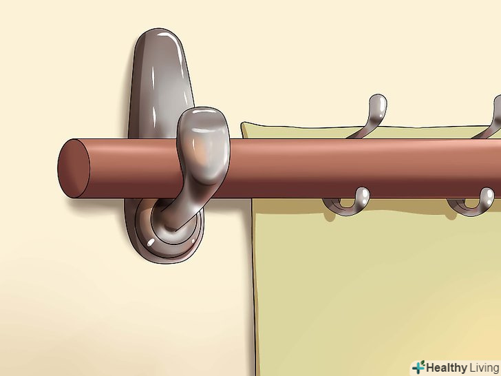 Повісьте килим. Планка повинна рівно стати в кріплення.- Якщо ви хочете закріпити низ килима, зробіть петлі для нижньої частини і закріпіть їх аналогічним чином.