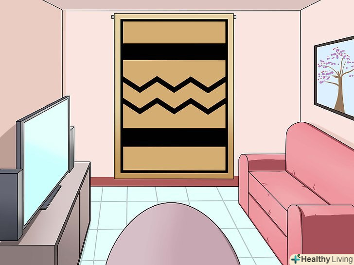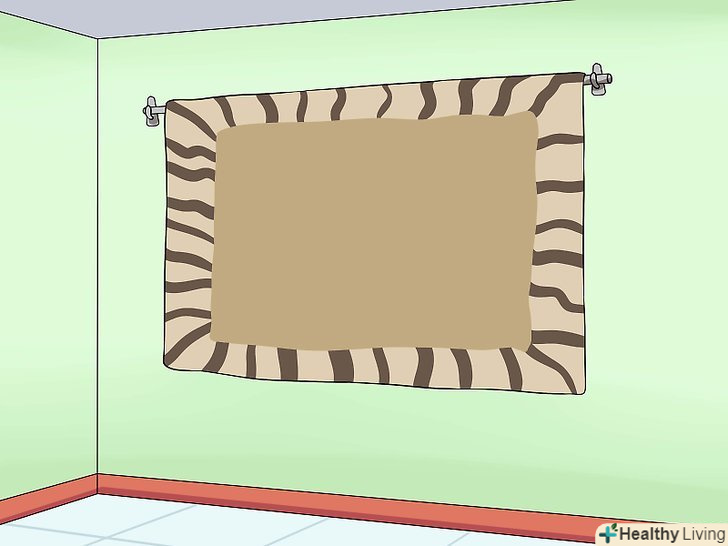 Повісьте килим. килим повинен легко навіситися на гачки і акуратно розміститися на стіні. Якщо ви вішаєте килим на несучу стіну, вам, можливо, доведеться пришити кілька стрічок, щоб замаскувати місця кріплень, оскільки ці кріплення будуть не тільки по краях планки.