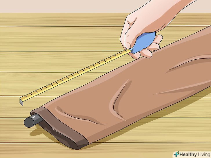 Заміряйте ширину тканини, приклавши її до дерев'яної або металевої планки. покладіть планку вздовж задньої частини килима, зверху накрийте її стрічкою і підгоніть ширину. Намітьте лінії прошиву з кожного боку стрічки шпильками або ручкою.- Переконайтеся, що планка зможе вільно вставлятися і вийматися, інакше вам не вдасться вправити її в стрічку.