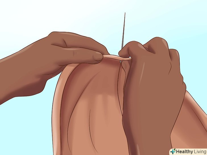 Вручну пришийте стрічку до задньої частини килима. постарайтеся захоплювати не більше двох рядів ниток кожним стібком, щоб стрічка надійно трималася на килимі. [3] основні нитки натягуються вертикально, тому їх виготовляють з більш міцного і грубого волокна, ніж поперечні. [4] основні нитки завжди щільно натягнуті у вертикальному положенні. [5]- Пришивайте стрічку надійною ниткою з бавовни, якою обробляють отвори для гудзиків.