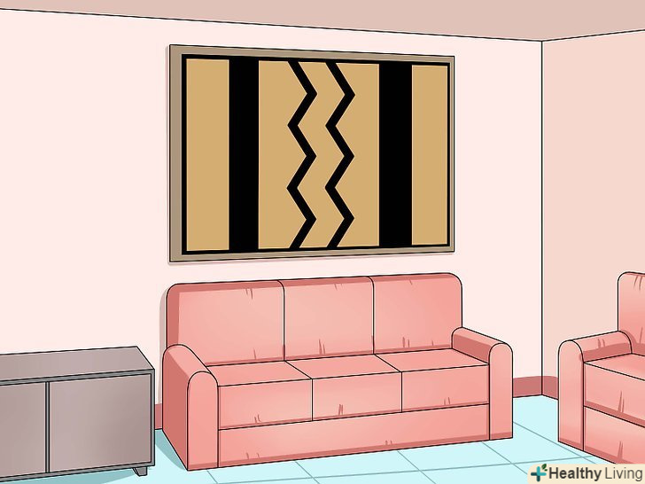 Спеціаліст з кріплення творів мистецтваДайте килиму час відвисітися, перш ніж закріплювати низ. Пітер Салерно, власник Hook It Up Installation, каже: «Якщо ви вішаєте килим на стіну, з часом він розтягнеться. Якщо ви закріпіть низ, він почне пузиритися і буде виглядати відвисши, але якщо ви залишите його вільним, йому буде куди тягнутися. Якщо з часом ви побачите, що килим більше не потягнеться, можете використовувати в нижній частині пару цвяхів або клейких смужок, щоб він прилягав до стіни».
