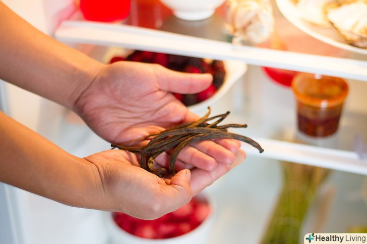 Наповніть свій холодильник приємним запахом. це звичайно не для всіх, але деяким людям може сподобатися тонкий аромат, скажімо, ванілі, коли вони відкривають холодильник. Головним словом у цьому кроці є» тонкий " запах. Ви ж не хочете щоб, при відкритті холодильника все навколо пахло ваніллю? Як у випадку з одеколоном або парфумами, легкий аромат більш приємний, особливо в поєднанні з їжею:- Змочіть вату екстрактом ванілі, маслом чайного дерева або есенцією лаванди, лимона або навіть бергамота і помістіть його в невеликій тарілці біля задньої стінки холодильника. Міняйте його кожні пару тижнів.