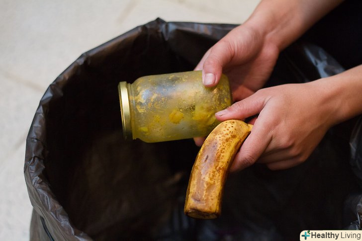 Викиньте всі старі, запліснявілі і зниклі продукти, помістіть їх в пакети, щоб продукти не почали текти і запобігти можливому поширенню цвілі. Щорічна або щосезонна чистка холодильника допомагає нагадати нам про продукти, про які ми забули, і які, на своє нещастя, програли битву з часом. Викиньте продукти або поповніть їх запаси.- Не соромте себе, викидаючи продукти, до яких ви ніколи не торкалися. Ті солоні огірки, які знаходяться в самому кінці холодильника ще з тих часів, коли у вашої бабусі ще не було зубного протеза, ймовірно, заслуговують того, щоб бути викинутими, якщо ви тільки не хочете накликати на себе біду.