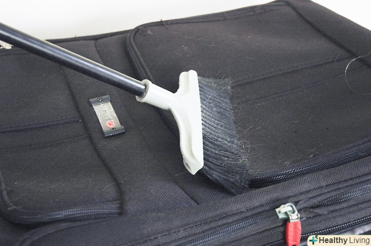 Видаліть пил. почистіть валізу щіткою від пилу, особливо якщо поверхня зроблена з тканини. Потім, використовуючи потрібні насадки, пропилососьте. Не забудьте пропилососити всі кишені і кишеньки всередині і зовні валізи-напевно в них застряг різне сміття від багатьох поїздок. Але спочатку перевірте, чи немає там якихось цінних речей на зразок сережок або запонок. Така попередня чистка вбереже від того, що на наступних її етапах ви не розвезете ще більше бруду. А, якщо ви побачили, що після такої чистки чемоданчик став як новенький, тоді можна вважати, що робота зроблена.