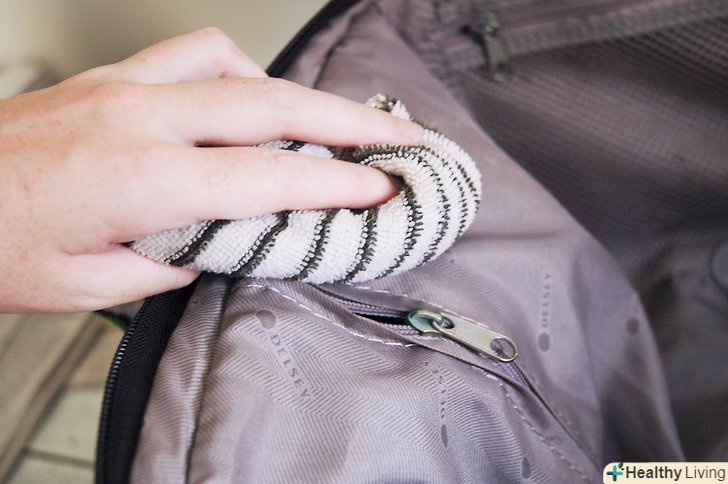 Почистіть валізу зсередини. якщо внутрішні стінки вистелені пластиком, протріть їх чистою вологою тканиною (не тієї, що ви використовували для зовнішніх стінок), і, при необхідності, змоченою м'яким миючим засобом. Якщо внутрішня поверхня зроблена з тканини, просто пропилососьте її або протріть сухою тканиною.