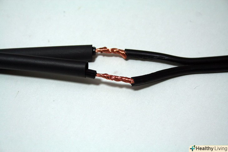 Помістіть термоусадочну трубку. при використанні термоусадочної трубки для ізоляції зрощування відріжте шматок трубки приблизно в 2 рази більше за область зрощування. Посуньте його до будь-якого кінця проводів. Підніміть дріт з шляху зрощування таким чином, щоб він передчасно не нагрівався процесом зрощування.