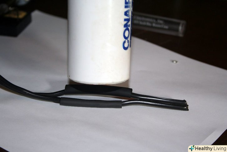 Ізолюйте сплайсинг.- Встановіть термоусадочну трубку. Якщо ви використовували термоусадочну трубку для ізоляції сплайсингу, посуньте її вниз по сплайсингу. Використовуючи теплову гармату, нагрійте трубу так, щоб вона стискалася для щільного прилягання до зрощування. Не перегрівайте її, бо трубка трісне і обвуглитися.