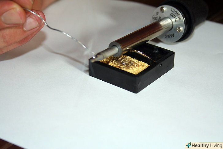 Підготуйте паяльник. помістіть невелику кількість припою на кінець наконечника нагрітого паяльника. Воно стане в'язкою рідиною.