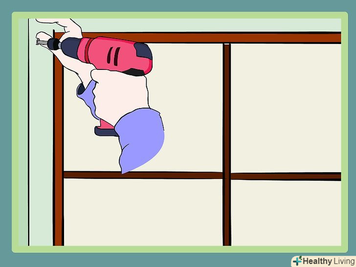 - Вставте дюбелі (якщо необхідно) і прикріпіть кронштейн гвинтами. Якщо ви кріпите штори на дерев'яній поверхні, а не на кам'яній, можете закріпити гвинт прямо в дерево (зробивши отвір шилом) без свердління і дюбелів.