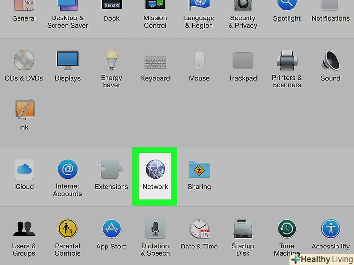 НатиснітьМережа. цей значок у вигляді Земної кулі знаходиться на сторінці «Системні налаштування».