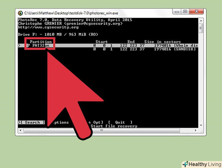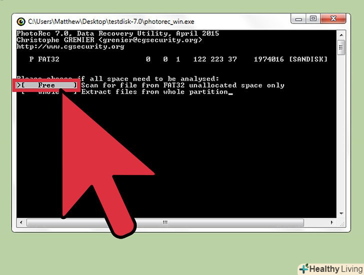 Як простір для пошуку файлів у FAT16 або FAT32 виберіть «Free» (вільний).- Виберіть «Whole» (Все), якщо SD-карта пошкоджена.