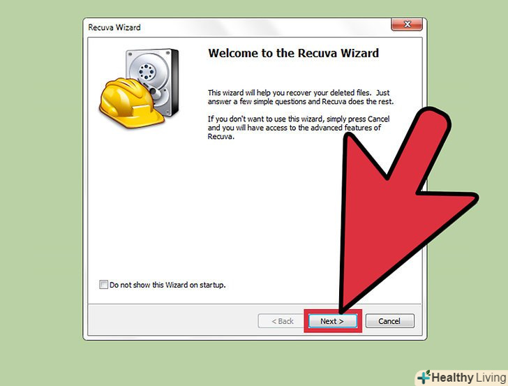 Відкрийте вікно програми Recuva і у вікні вітання натисніть "Далі".[12]
