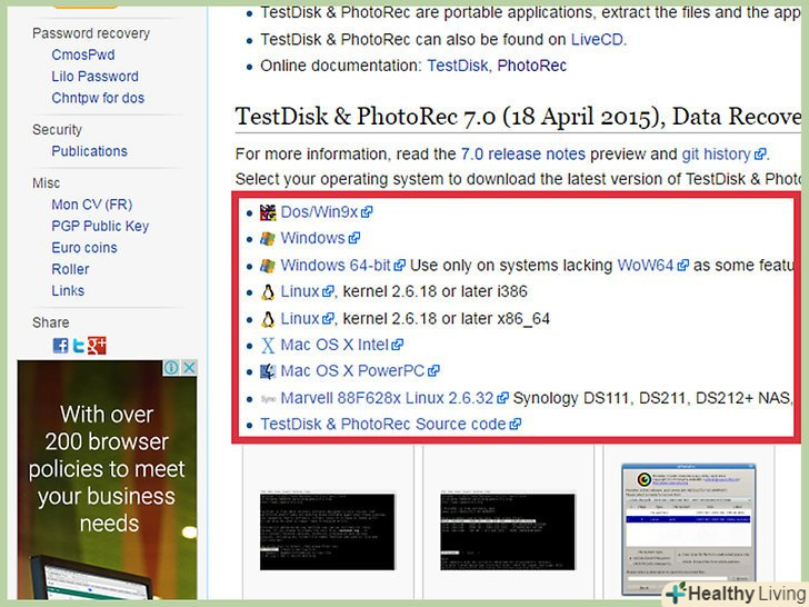 Знайдіть розділ " TestDisk amp;PhotoRec 7.0» і клацніть по версії, яка сумісна з вашою операційною системою. [2]