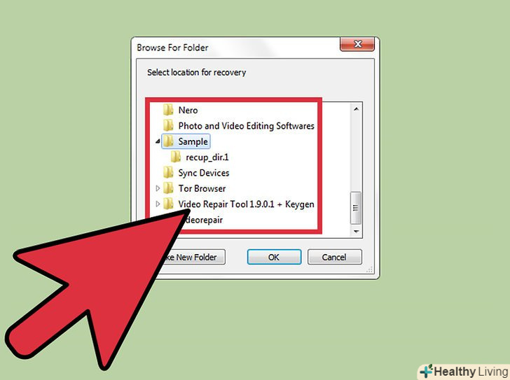 За допомогою клавіш зі стрілками виберіть папку для зберігання відновлених файлів.- На цьому етапі можна створити нову папку.