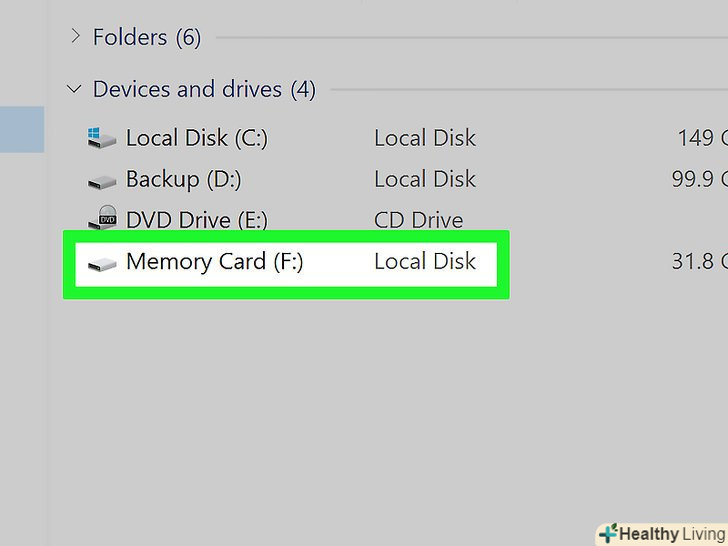 Натисніть на ім'я своєї SD-карти.ви знайдете його в розділі "Пристрої та диски" посередині вікна "цей комп'ютер". Як правило, SD-карта називається "SDHC".