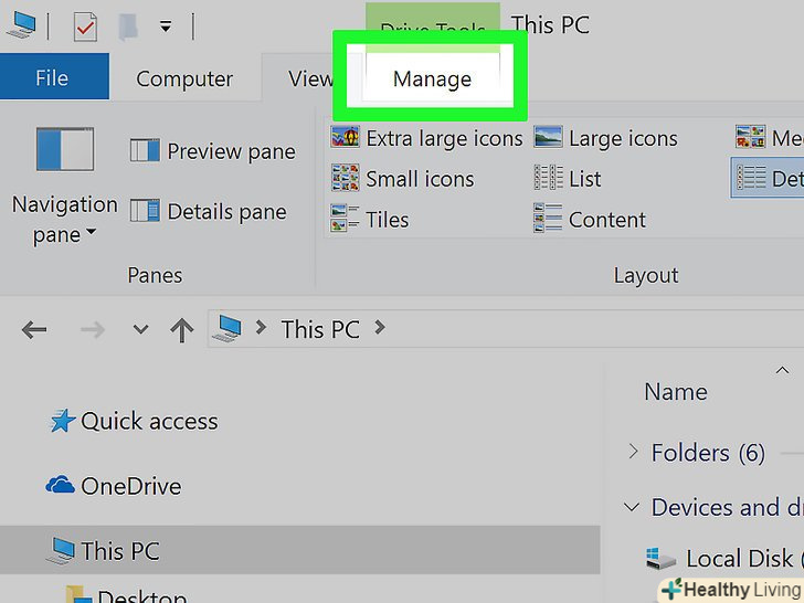 Клацніть по вкладціУправління. вона знаходиться у верхній лівій частині вікна «цей комп'ютер».