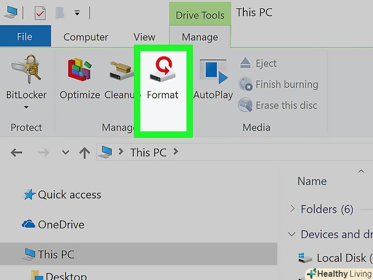НатиснітьФорматувати. це значок, який розташований у верхній лівій частині вікна і має вигляд флешки з червоною круглою стрілкою. Відкриється вікно "форматувати".