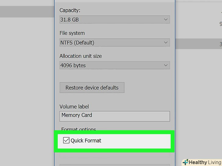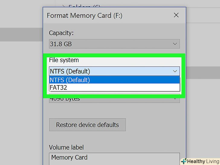 Виберіть одну з вищевказаних опцій.так ви виберете файлову систему накопичувача.- Якщо ви вже форматували диск, поставте прапорець у опції "Швидке форматування".