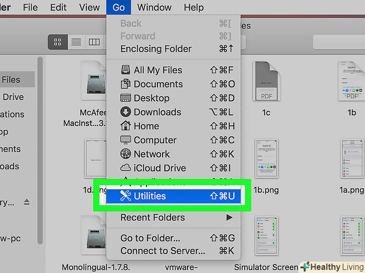 Клацніть поУтиліти.ця опція знаходиться в випадаючому меню "Перехід".