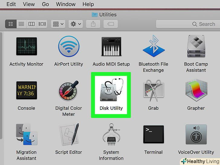 Двічі клацніть поДискова утиліта. Вона знаходиться посередині сторінки «Утиліти».- Як правило, список утиліт впорядкований за алфавітом.