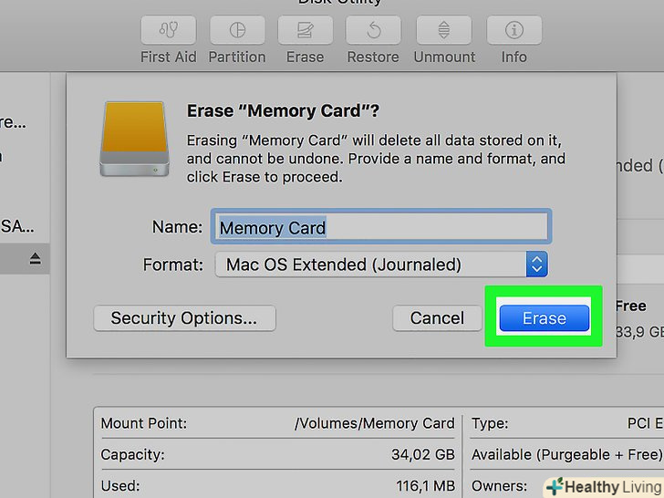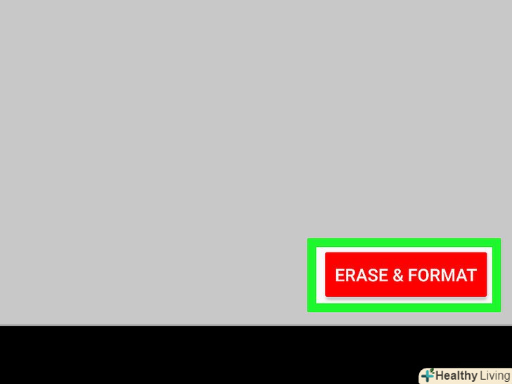 Клацніть поСтерти і форматувати.ця опція знаходиться в нижній частині екрана. Запуститься процес форматування SD-карти.- Цей процес займе всього кілька секунд. Коли він завершиться, SD-карта буде відформатована.