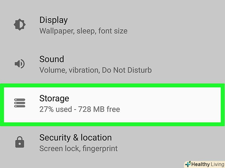 Прокрутіть вниз і натиснітьПам'ять.ви знайдете цю опцію посередині екрана.- На пристрої Samsung натисніть "обслуговування пристрою".