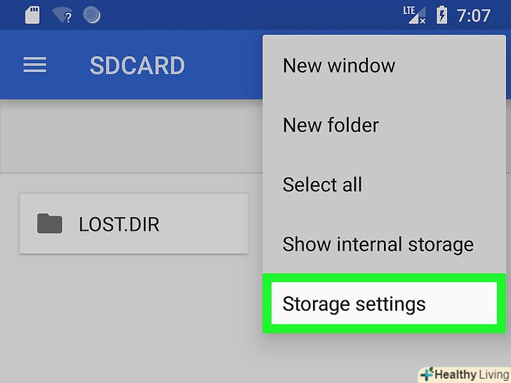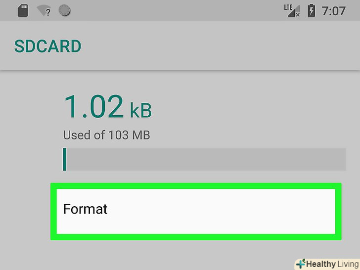 НатиснітьФорматувати або Форматувати як внутрішній. Щоб використовувати SD-карту в якості внутрішнього накопичувача, натисніть "форматувати як внутрішній". Якщо необхідно просто стерти SD-карту, виберіть "форматувати".- На пристрої Samsung спочатку натисніть "накопичувач" в нижній частині екрана.
