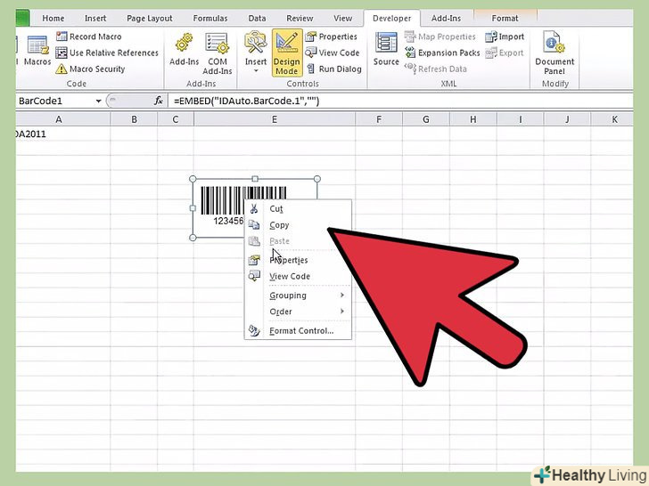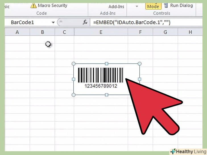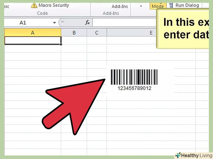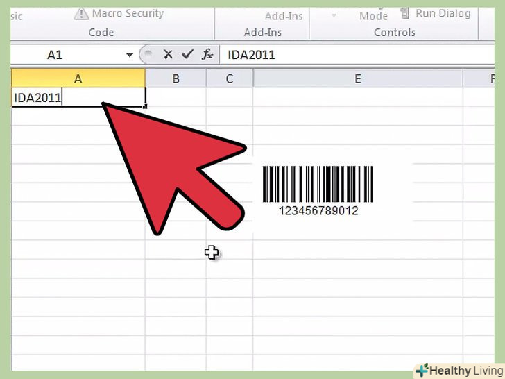 Закрийте редактор Visual Basic. Поверніться у ваш документ. Для перевірки введіть число, яке будете використовувати в якості першого штрих-коду, в комірку A1. У розташованій поруч осередку ви введете функцію, яка видасть вам штрих-код.