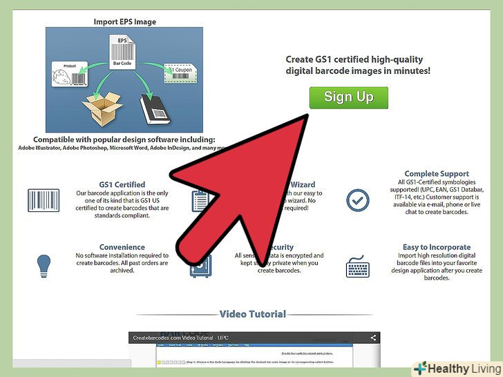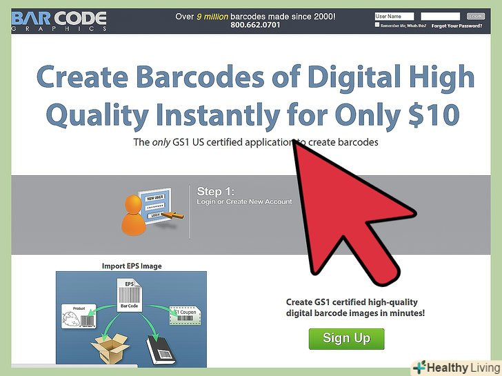 Щоб створити штрих-код онлайн, перейдіть на сайт CreateBarcodes.com. дотримуйтесь інструкцій майстра створення штрих-коду, щоб створити цифровий штрих-код і зберегти його у форматі .eps.- Якщо ви створюєте штрих-коди для приватного використання (наприклад, для каталогізації колекції), тоді подумайте над літерним або цифровим позначенням вашої колекції. Присвойте ім'я або серію номерів для кожного продукту і введіть кожну серію на сайті BarcodesInc, щоб згенерувати штрих-коди.