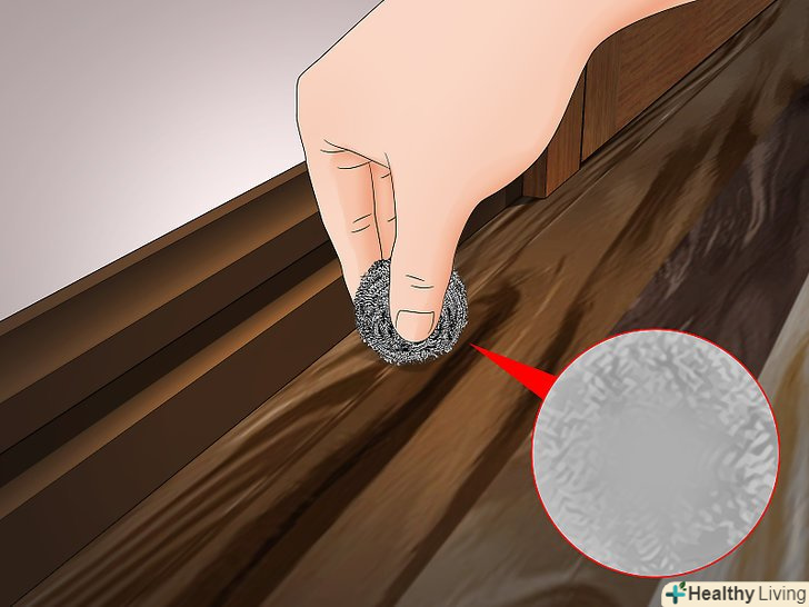 Перевірте наявність воскового покриття. якщо ви не знаєте, чи підлога була покрита воском, перевірте це, щоб зрозуміти, як краще доглядати за підлогою. Змочіть шматок дуже дрібної сталевої губки і потріть нею ділянку, який, по-вашому, покритий воском. [13]- На сталевій губці віск буде схожий на світло-сіру пляму або в'язку речовину.