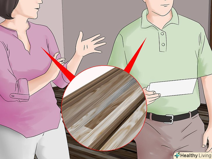 Проконсультуйтеся з професіоналом, у якого є досвід по відновленню старих підлог. зверніться за допомогою до професіонала, якщо ваш старий дерев'яна підлога сильно зношений або пошкоджений, або у вас виникнуть сумніви з приводу матеріалів, з яких він зроблений. Щоб знайти хорошого підрядника, розпитайте своїх друзів і знайомих. Знайдіть людину з досвідом по відновленню дерев'яних підлог, який не порадить просто зняти всю підлогу без крайньої на те необхідності. [18]- Наприклад, якщо ваш підлогу необхідно закрити, попросіть досвідченого підрядника зняти підлогу в непомітному місці, наприклад в коморі, і замінити їм зношений або пошкоджену ділянку дерев'яної підлоги.